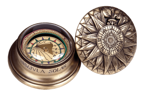 Brújula de Bolsillo con Rosa de los Vientos – Latón Envejecido 7x7x1,5cm