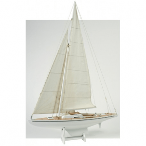Maqueta Artesanal Velero Columbia: El Columbia (1899) fue el primer velero en ganar la Copa de América dos veces seguidas (en 1899 y en 1901). Los planos del Columbia fueron diseñados por el arquitecto americano Nathanael Herreshoff para John Pierpont Morgan y Edwin Dennison Morgan del New York Yacht Club. Maqueta decorativa de un velero realizado en madera, pintado y barnizado. Trabajo artesano. Entregado desmontado en caja individual.
