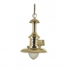 Lámpara náutica en latón envejecido compuesta de un globo de vidrio esmerilado envuelto por una red metálica.