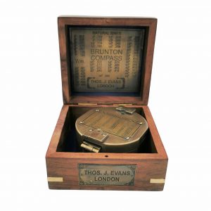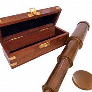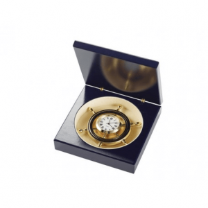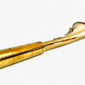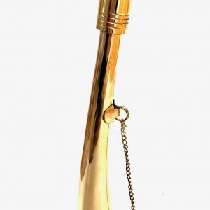Bocina de niebla de latón brillante con su cadenita. La bocina de niebla es un instrumento de señalización marítima que emite señales sonoras en tiempo de niebla para señalar un obstáculo o peligro (arrecife, banco…).