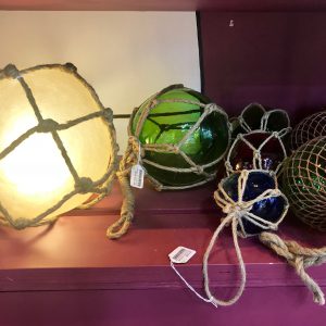 Seis mini boyas de pesca de colores surtidos. La boya de pesca era un antiguo flotador constituido de una bola de vidrio envuelta de una cuerda trenzada. Se utilizó hasta los años 50. Estos flotadores se fijaban en las redes de pesca para que se mantuvieran en la superficie mientras derivaban por la corriente. Objeto que dará un simpático toque marino a sus llaves, sus puertas de armario….