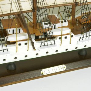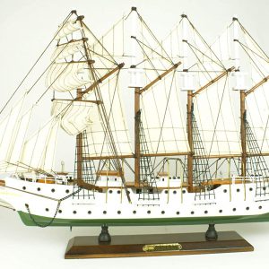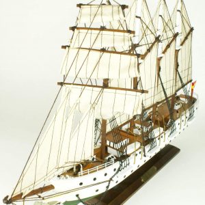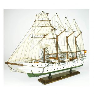 - Maqueta de barco velero artesanal imitación del famoso buque escuela Juan Sebastián Elcano. Detalles fieles al barco Juan Sebastián Elcano. Está hecho en madera artesanal, pintado y arbolado a mano, con pequeños detalles en miniatura montados cuidadosamente en su cubierta.