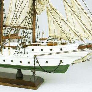 - Goleta velero náutico de cuatro mástiles. Se vende sobre peana de madera con grabado sobre una pequeña placa dorada.