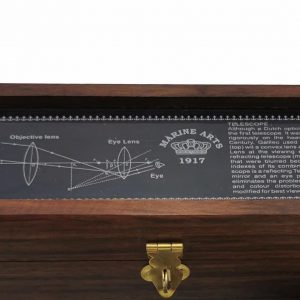 Entregado con una bonita caja de madera de palisandro con tapa de cristal con textos, y decorada con incrustaciones en latón.