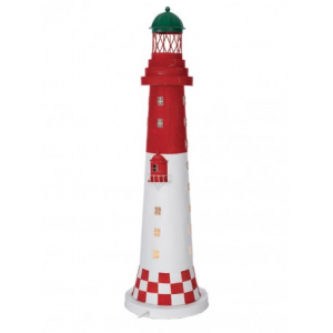Faro Saint Mathieu (Finisterre) 50x18cm: Situado en la punta Saint Mathieu, en Plougonvelin (Finisterre), fue construido en 1835 sobre las ruinas de una antigua abadía. Es un faro muy importante de la costa francesa cuyo alcance teórico es de aproximadamente 55 km. Faro luminoso de hojalata. Se puede iluminar con una vela LED en su interior (no incluída). Realizado y pintado a mano.