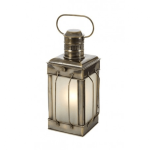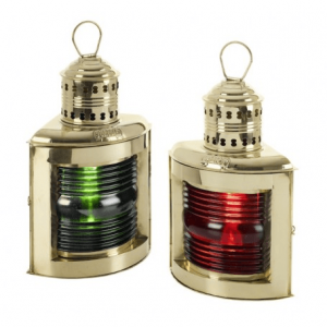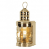 Farol de fondeo eléctrico, equipado de su lente de Fresnel. Antes de que la electricidad apareciese en los barcos, las luces eran de petróleo. Tenían entonces una pequeña chimenea para la evacuación del humo. Para aumentar la lumbre de las llamas se utilizaron los vidrios de Fresnel que actuaban como lupa. Lámpara náutica de mesa realizada en latón envejecido.