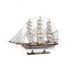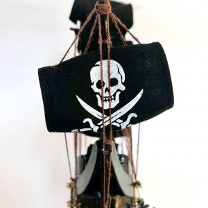Maqueta Galeón Pirata “Perla Negra” o “Black Pearl” , navío ficticio de tipo “indiaman” (finales del S XVIII-principios del S XIX) que aparece en las películas de aventuras de Piratas del Caribe y que se convierte en el escenario fascinante de numerosas intrigas, batallas de corsarios y piratas, búsqueda de tesoros, maldiciones, motines, traiciones y conquistas. Maqueta decorativa realizada en madera, pintada y completamente montada. Las singulares velas negras con sus dibujos de pirata son de algodón. Entregada completamente montada y embalada en caja individual.