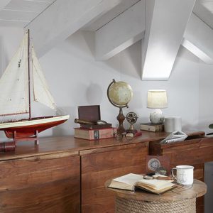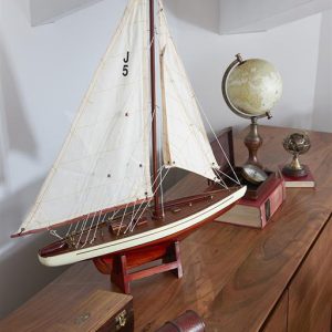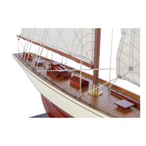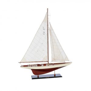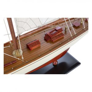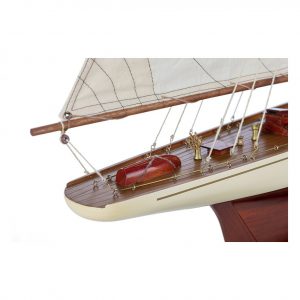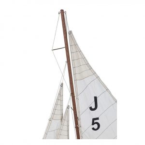 El Rainbow (1934), construido según las normas de la clase J, fue diseñado por William Starling Burgess y lanzado en Rhode Island (EEUU) para defender la Copa de América contra “Endeavour”. Velero náutico de madera, pintado a mano. Embalaje : Mástil desmontado.