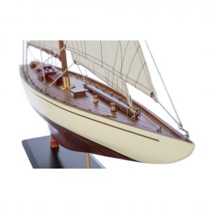 El Rainbow (1934), construido según las normas de la clase J, fue diseñado por William Starling Burgess y lanzado en Rhode Island (EEUU) para defender la Copa de América contra “Endeavour”. Velero náutico de madera, pintado a mano. Embalaje : Mástil desmontado.