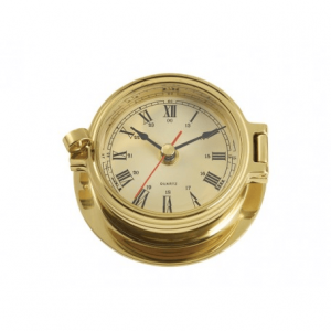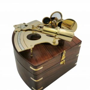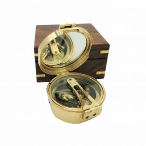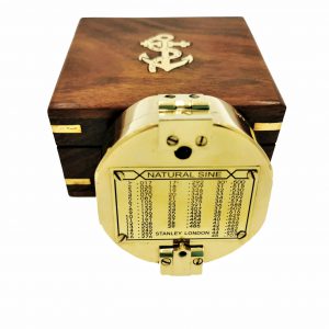 Termómetro y higrómetro. Indican la temperatura y la humedad permitiendo una primera previsión meteorológica. El instrumento de medición es de materia plástica, el aro dorado y el fondo beige. Viene montado sobre un marco en MDF recubierto de una carta náutica y enmarcado con un bonito marco de madera;